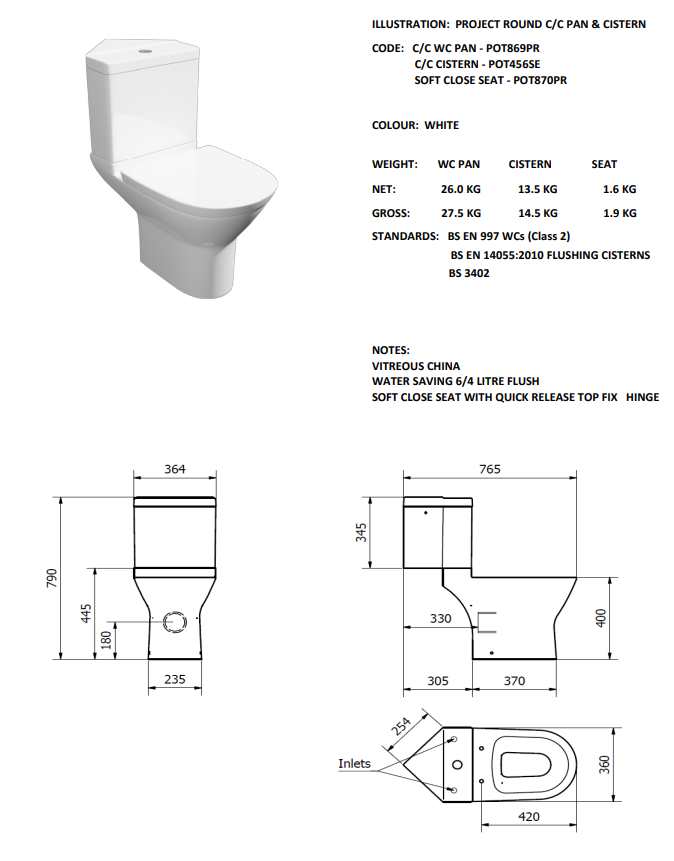 Includes C/C Cistern & Soft Close Seat for comfort and convenience